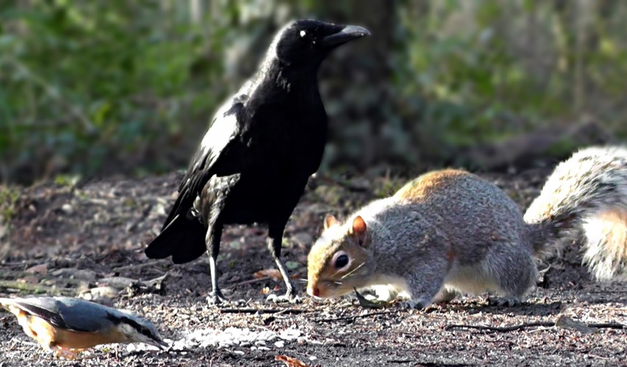 Meanwhile, a squirrel has been peeking anxiously from behind the willow’s trunk. When I glance at him, he begins to dart back and forth, waving his bushy tail, clicking and chirping annoyingly. I try to ignore him, but he audaciously dives down the trunk and plants himself on the bench beside me. Standing up on two legs, tiny paws embraced almost prayer-like, there’s no mistaking he’s got a whiff of the butter. You don’t even like chocolate, I silently mouth to him, and grudgingly part with another piece of my treat. He whips it up and starts gnawing at it instantly. I have more visitors. A pair of chickadees are now hovering above my head, wooing me with their sweeeetie whistles. My brows knit in disapproval, but I fold almost instantly and throw them a few crumbs.